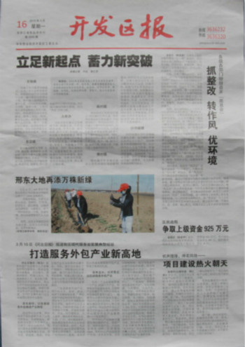 邢臺眾聯(lián)科技服務有限公司作為邢臺市服務外包產(chǎn)業(yè)的龍頭企業(yè),于3月10日分別在《河北日報》第07版中國?國際版面及邢臺《開發(fā)區(qū)報》頭版以“打造服務外包產(chǎn)業(yè)新高地”為題,刊登了眾聯(lián)科技發(fā)展服務外包產(chǎn)業(yè)新聞。文中提到眾聯(lián)科技將充分發(fā)揮服務外包產(chǎn)業(yè)的帶頭作用,積極帶動邢臺經(jīng)濟開發(fā)區(qū)服務外包產(chǎn)業(yè)的蓬勃發(fā)展。