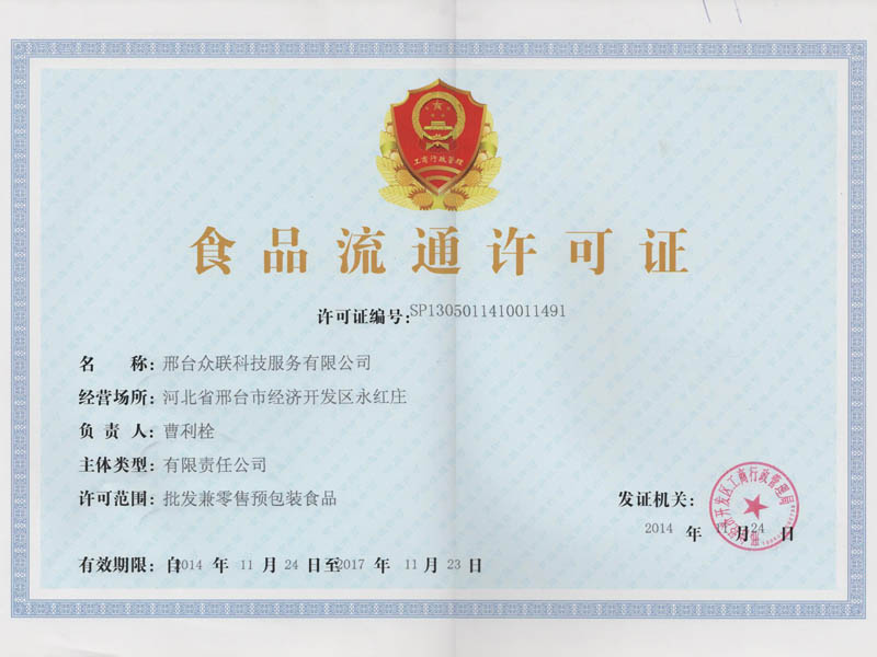 食品流通許可證正本